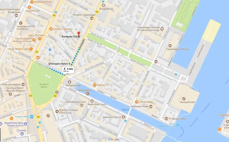 Den nye adresse ligger tæt på parkeringshuset i Dronnings Tværgade, Landgreven og ved Skuespilhuset, ligesom Metroen på Kongens Nytorv kun er 300 meter væk.