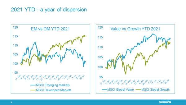 A sustained recovery also means it is unlikely that the reflation trend has stopped, rather it has paused as the Delta variant has surged and will resume. This is potentially good news for value managers like SKAGEN and again emphasises the need to think long-term – for investors like warriors, it pays to be patient.