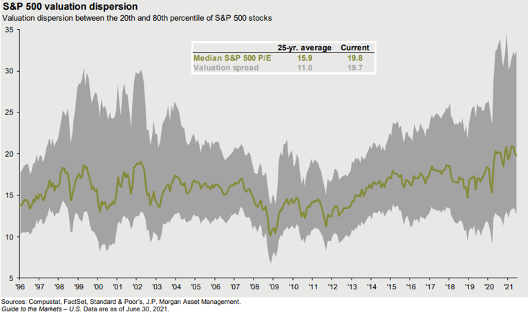 We can find a plethora of reasons, the most obvious being the Delta variant scaring people away from reopening trades and the crackdown in China on the tech industry. The broader explanation may be that we are at the beginning of transitioning from the (still) accommodative central bank policy of the last decade to a more fiscal driven investment cycle in public infrastructure, renewable energy and new technologies to reduce emissions and capture carbon. With higher uncertainty comes higher volatility.