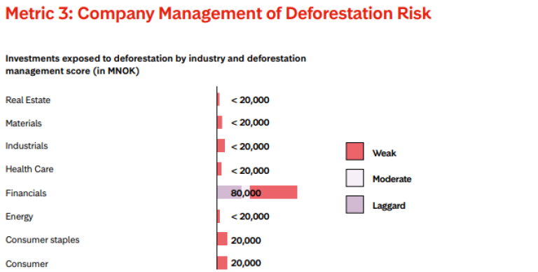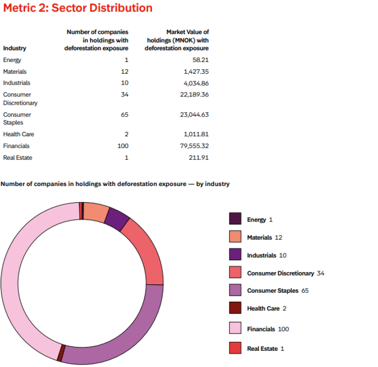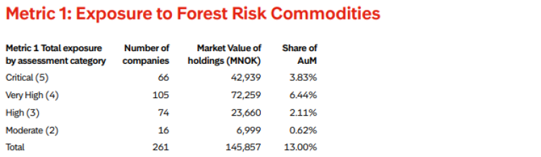 Storebrand employs several key metrics based on Forest IQ to evaluate and disclose deforestation risks: