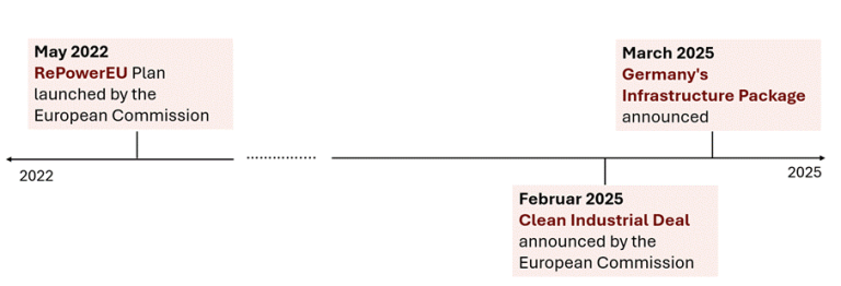 Following the Clean Industrial Deal, Germany has announced a significant infrastructure package aimed at revitalizing its economy and enhancing energy security. This package includes a EUR 500 billion fund dedicated to various sectors such as transportation, energy, education, and defense. By addressing long-standing infrastructure deficits, Germany aims to promote economic growth and ensure a resilient energy system.