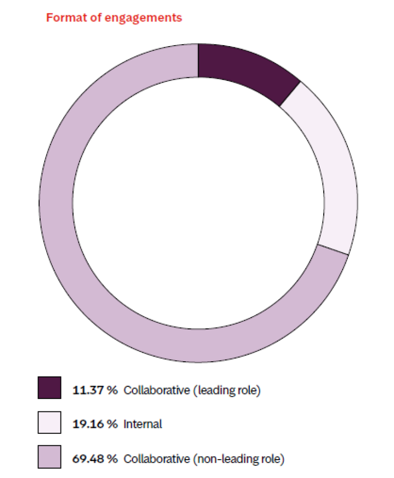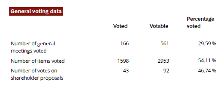 As is often the case, Q4 2023 was a busy one – and that’s reflected in our engagement and voting data for the quarter. We had high levels of engagement activity with companies in our portfolio, continued to be involved in several demanding cases related to voting and shareholder proposals.  Collaboration with investors and other stakeholders in society remains a vital theme, and continues to rise steadily as a share of our overall activity.