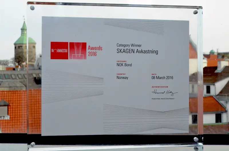 Morningstar sier at formålet med prisen er "å få frem forvaltere som har utmerket seg" og at SKAGEN Avkastning "har jobbet seg opp over mange år" etter å hatt utfordringer i 2008.